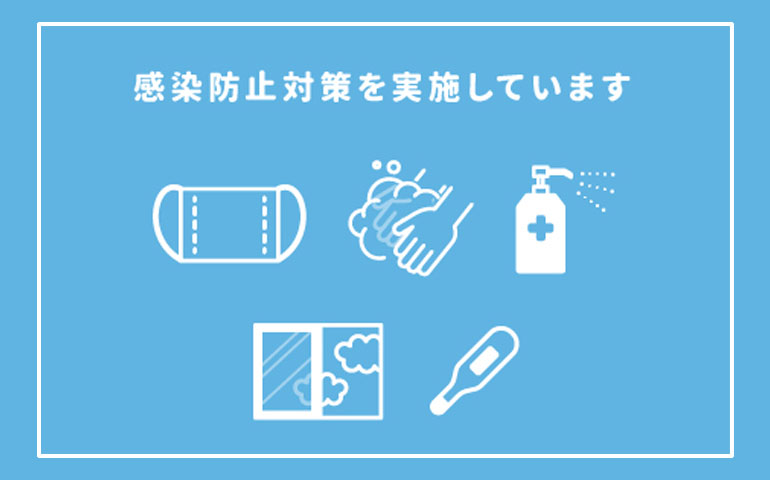 当店では「新型コロナウイルス」感染症予防対策として、以下の取り組みを実施しております。